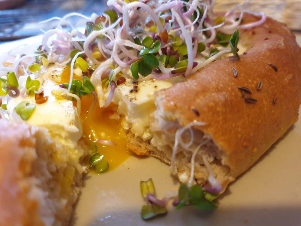 Po wyjęciu z piekarnika można posypać zieleniną lub kiełkami (na zdjęciu kiełki rzodkiewki).