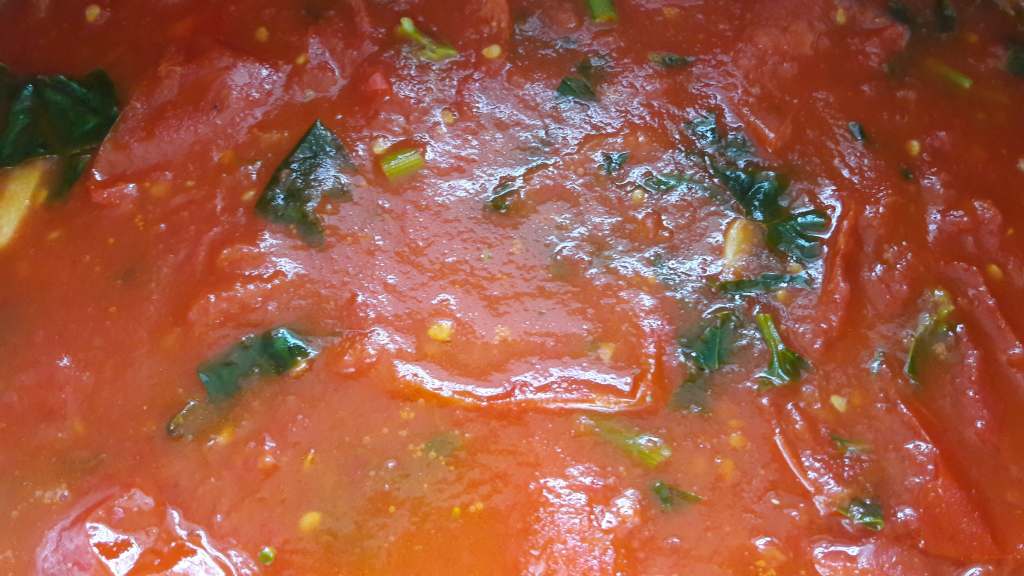 Oliwę wlać do garnka, rozgrzać, wrzucić czosnek pokrojony w plasterki. Po chwili dodać pokrojone pomidory. Dodać sól. Gotować na małym ogniu, pod przykryciem, aż pomidory zmiękną. Dodać pokrojone lubczyk i bazylię i chwilę jeszcze pogotować. Doprawić do smaku solą i miodem, a następnie zblendować na gładką masę. Przelać do słoików. Pasteryzować w piekarniku 25 min. od zagotowania w temp. 120 stopni Celsjusza.