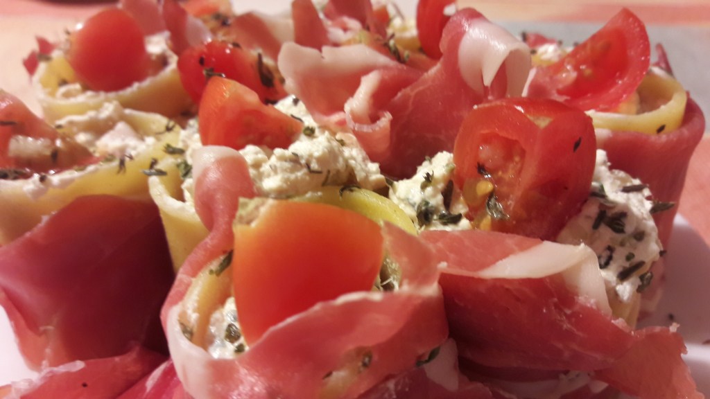 Zrobiłam 2 wersję bezmięsną i z szynką parmeńską.