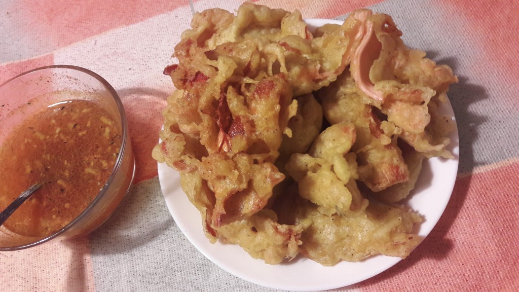 Pink Oyster Mushroom Tempura, czyli boczniak różowy smażony w cieście.